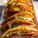Irish Tacos are a delicious fusion dish combining soft tortillas filled with creamy mashed potatoes, melted Irish cheddar, savory corned beef, and sautéed cabbage and onions, all folded and lightly fried to a golden crisp. These tacos offer a hearty and comforting meal with a unique Irish twist, perfect for brunch or a fun dinner.