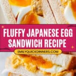 Wrapping the sandwich tightly in plastic wrap (or parchment if you’re doing the soft boiled version) and letting it rest for five minutes is a game changer. It helps the filling set and makes slicing much cleaner. When slicing, use a very sharp knife and a gentle sawing motion to get that iconic, neat square shape. The cross-section with fluffy bread and creamy filling is soooo satisfying.