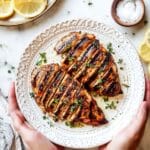 This flavorful Grilled Chicken Marinade recipe features a zesty blend of olive oil, lemon juice, soy sauce, and aromatic herbs and spices, perfect for tenderizing and enhancing boneless, skinless chicken breasts or thighs. Marinate your chicken and cook it either on the grill for a smoky char or on the stove in a skillet for a golden crust, making it a versatile and easy meal option.