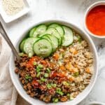 This Korean Beef Bowl recipe is a quick and flavorful meal, combining lean ground beef cooked in a savory soy-based sauce with brown rice, fresh cucumber, and spicy Gochujang sauce. Perfect for a weeknight dinner, it offers a balance of sweet, spicy, and umami flavors with healthy ingredients and customizable options.