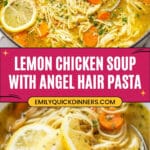 • This Lemon Chicken Soup features a savory broth with simple seasonings, lemon for brightness, and tender chicken paired with noodles, making it an easy and cozy recipe.
