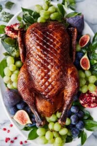 For special occasions, I like to carve the turkey into thick slices and fan them out on a large wooden board drizzled with a little extra glaze and garnished with fresh herbs and pomegranate seeds. It’s eye-catching and invites guests to dig in.