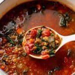 - The lentils will absorb some liquid as the soup sits, causing it to thicken; thin with additional broth or water as needed.