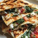These Mediterranean Quesadillas combine fresh spinach, tangy feta, creamy mozzarella, and a hint of red onion inside warm, crispy flour tortillas. Quick to prepare and packed with vibrant flavors, they make a perfect light lunch or appetizer with a Mediterranean twist.