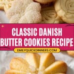 Classic Danish Butter Cookies that melt in your mouth with a crisp, buttery texture. These cookies are piped into charming shapes and lightly golden baked to perfection, making them perfect for festive occasions or a delightful treat any time.