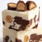 - Add Peanut Butter Cups: Sprinkle 1 cup of mini peanut butter cups evenly over the fudge layers.