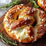 Delight in these soft, golden Mozzarella Stuffed Soft Pretzels, featuring a gooey mozzarella center infused with fragrant rosemary and complemented by a Parmesan crust. Perfectly boiled in a baking soda bath for that classic chewy texture, these pretzels make a savory snack or appetizer you’ll want to make again and again.