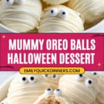 Delightfully spooky and easy to make, these Mummy Oreo Balls combine crushed Golden Oreos and creamy cream cheese, coated in a smooth vanilla candy melt shell and decorated with candy eyes for a fun Halloween treat that’s no-bake and kid-friendly.