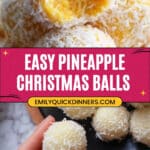 I’ve frozen these before when I needed to prepare way ahead of Christmas, and they freeze surprisingly well! Just place the pineapple balls on a parchment-lined tray, freeze until firm, then transfer to a freezer-safe container. Thaw overnight in the fridge before serving for best texture.