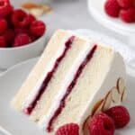 This Raspberry Almond Cake features moist white almond-flavored cake layers filled with a luscious raspberry filling and frosted with a smooth, buttery shortcut Swiss meringue buttercream. Enhanced by fresh raspberries and crunchy slivered almonds, this elegant dessert perfectly balances fruity tartness with rich sweetness, making it ideal for celebrations or special occasions.