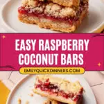 Delightfully sweet and chewy Raspberry Bars with Coconut combine a buttery crust, tangy raspberry preserves, and a crunchy coconut topping, perfect for a delicious homemade treat or dessert.