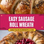 For a fun twist, I’ve arranged smaller individual sausage roll portions in a circular wreath on a platter for easy party snacking. You can also serve the cranberry sauce in a festive bowl right in the center of the wreath, making it easy for everyone to dip or drizzle to taste.