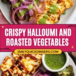 - Crispy halloumi and roasted vegetables make a delicious and easy sheet pan dinner.