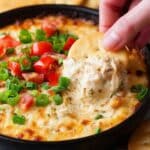 - Rest and Garnish: Remove the dip from the oven and let it sit for 5-10 minutes to firm slightly. Before serving, sprinkle sliced green onion and chopped Roma tomato over the top for a fresh, colorful garnish.