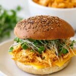 - Shred the Chicken: Remove the cooked chicken breasts from the slow cooker and shred the meat using two forks to create pulled buffalo chicken.