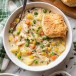 This Slow Cooker Chicken Pot Pie Soup is a comforting, hearty dish that brings the classic flavors of chicken pot pie into a creamy soup form. Featuring tender chicken, potatoes, celery, onions, and mixed vegetables in a rich, thickened sauce with fresh herbs, it’s perfect for a cozy meal. Made easy in the slow cooker, it simmers to delicious perfection while you go about your day and is served with flaky homemade or store-bought biscuits to complete the experience.