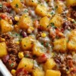 This Slow Cooker Cowboy Casserole is a hearty, comforting dish perfect for busy weeknights. Featuring layers of seasoned ground beef, potatoes, kidney beans, corn, and tomato sauce, it slow cooks to tender perfection. Topped with melted cheese and garnished with sour cream and chives, this all-in-one casserole brings bold southwestern flavors to your table with minimal effort.