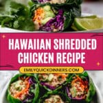 Set your slow cooker to Keep Warm while you prepare your garnishes and sides. Whether you’re rolling up Swiss chard wraps or plating it over rice, everything will be piping hot and fresh-tasting. This slow cooker shredded Hawaiian chicken is really a crowd-pleaser every time.