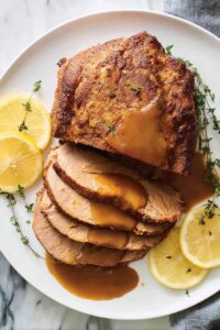 I love garnishing this turkey with fresh parsley or thyme sprigs to add a pop of color and a hint of fresh herb aroma. Sometimes, I squeeze a little lemon over the slices to brighten all those deep, savory flavors—it’s such a simple touch that makes a difference!