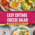 A refreshing and protein-packed Cottage Cheese Salad featuring creamy avocado, savory smoked salmon, and a hard-boiled egg. This quick and easy salad makes a perfect nutritious meal or snack with a delightful mix of textures and flavors.