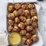 These Easy Sourdough Discard Pretzel Bites are soft, chewy, and buttery little snacks made from sourdough discard, perfect for using up starter and enjoying a homemade treat. They are boiled briefly in a baking soda bath to develop their signature pretzel crust and baked until golden brown. Topped with flaky sea salt or everything bagel seasoning and served warm with your favorite dipping sauce, these bites are an irresistible appetizer or snack.