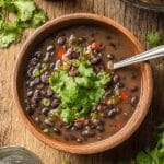 A flavorful and hearty Spicy Black Bean Soup featuring a blend of aromatic spices, fresh vegetables, and creamy black beans, perfect for a comforting meal with a kick of heat.
