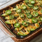 This Spicy Salmon Sushi Bake is a delicious, hearty twist on traditional sushi, combining baked salmon with seasoned sushi rice and creamy spicy mayo, all topped with savory Japanese condiments and fresh slices of avocado and jalapeños. Perfect for a casual dinner or party platter, this recipe brings sushi flavors to a comforting casserole that’s easy to prepare and share.