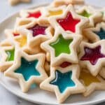 Delightfully colorful and festive Stained Glass Cookies featuring a buttery star-shaped shortbread exterior and vibrant, melted Jolly Rancher candy centers. Perfect for holiday celebrations or any occasion that calls for a touch of sweet creativity.
