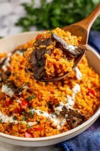 - Make-Ahead: Cook rice and steak separately in advance, refrigerate, then reheat and assemble when ready.