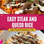 Definitely! You can prep the rice and steak separately and store them in the fridge. When ready to eat, reheat, assemble with queso and garnishes, and serve. It’s a great meal prep option for busy weeks.