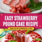This Easy Strawberry Pound Cake is a moist, flavorful dessert perfect for any occasion. Made with white cake mix, fresh strawberries, and strawberry gelatin, it boasts a lovely pink hue and a delicious strawberry taste. Topped with a smooth, sweet glaze and garnished with fresh strawberries, this cake is as beautiful as it is tasty. Simple to prepare and baked in a Bundt or angel food cake pan, it’s an ideal treat for strawberry lovers.