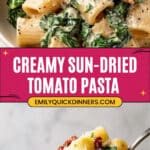 This Sun-Dried Tomato Pasta recipe features a creamy, flavorful sauce combining sun-dried tomatoes, garlic, white wine, and fresh spinach. Perfectly cooked pasta is tossed in this rich sauce, making a comforting and elegant meal that’s quick to prepare and delicious for any occasion.