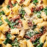 This Sun-Dried Tomato Pasta recipe features a creamy, flavorful sauce combining sun-dried tomatoes, garlic, white wine, and fresh spinach. Perfectly cooked pasta is tossed in this rich sauce, making a comforting and elegant meal that’s quick to prepare and delicious for any occasion.