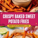 Deliciously crispy baked sweet potato fries served with a zesty chipotle lime dipping sauce, perfect as a flavorful side dish or snack. The sweet potatoes are oven-roasted to a golden brown and paired with a creamy, mildly spicy dip that balances sweetness with smoky heat.