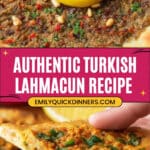 Lahmacun is a traditional Turkish flatbread topped with a flavorful mixture of ground lamb, vegetables, and spices, baked to crispy perfection. Often referred to as Turkish pizza, this recipe combines a thin, soft dough base with a spiced meat topping that’s easy to prepare and perfect for a delicious family meal or snack.