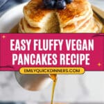 Fluffy Vegan Pancakes made with simple ingredients including all-purpose flour, baking powder, and non-dairy milk, perfect for a delicious and plant-based breakfast option. These pancakes are light, airy, and naturally dairy-free and egg-free, featuring hints of vanilla and a slight crisp from vegan butter.