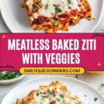 This Meatless Baked Ziti with Vegetables is a hearty, flavorful vegetarian comfort dish featuring a homemade veggie-loaded tomato sauce, tender pasta, and a rich blend of ricotta, mozzarella, and parmesan cheeses. Perfect for serving a crowd, it’s baked to bubbly perfection and garnished with fresh parsley for extra brightness.